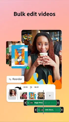 Video production has now become easier than ever thanks to the intuitive editing toolset of Adobe Express. Instead of spending hours with bulky software, you can immediately utilize available templates to get started. Every action like trimming, cutting, splicing, or arranging clips happens smoothly. Especially, adding text, background music, sound effects, and professional transitions helps your videos become more lively. Furthermore, the automatic caption creation feature for videos and flexible reframe capability help your content stay ready to shine on every social media platform without worrying about frame errors. You will also be very pleased with the intelligent noise removal capability, which elevates the audio quality of your video to a new standard.