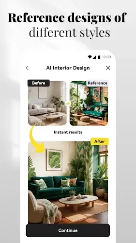AI Home Design also allows you to replace furniture directly within your photo, such as sofas, tables, lamps, and artwork, so you can visualize new items in your actual space. You can instantly change wall paint, materials, textures, or test flooring options like wood, tile, stone, and carpet. The AI automatically adjusts surrounding elements to keep everything consistent, making home renovation and upgrades easier than ever. Beyond design, the app includes one-tap object removal to make your space look clean and photo-ready, perfect for real estate, decor projects, or content optimization. You can even import reference photos from Pinterest or Houzz and let the AI recreate that style in your own home.