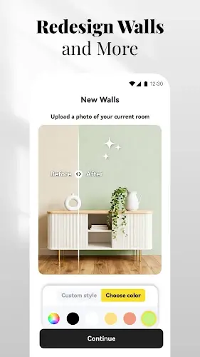- Wall Color & Texture Reskin (New Walls) to instantly preview new wall finishes.