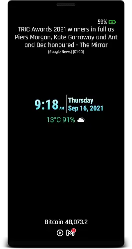 The app supports showing virtually anything: calendars, holidays, personal events, images, stickers, GIFs, MP4 videos, step count, step history, network signal, upload and download speed, and daily data usage. With multiple unique layouts such as 12-line horizontal, 3-line edge, hybrid, or 1–2 column modes, along with flexible portrait and landscape rotation, you can customize your AOD style exactly the way you want. The standout feature of Always on Display XPath is its ability to fetch website data using XPath, read JSON (crypto prices, exchange rates, etc.), and automatically update dynamic content without manual refreshing. Simply share a URL from your browser and the app will parse and display web content, news, or RSS directly on your widgets.