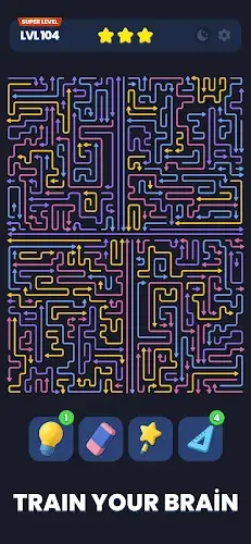 Even though the levels can become extremely tough, Arrow Out never abandons the player. When you get stuck at a certain level, the game provides a range of powerful help tools. Tools like Zoom and Grid Scale allow you to adjust your view to observe the entire board. In particular, the Hint will guide you to the right move, while the Magic Wand and Rubber are “magic” tools that help change the situation so you can continue your journey. The game emphasizes and rewards careful preparation and foresight, making every successful puzzle solve bring a sense of pride in your own intellect.