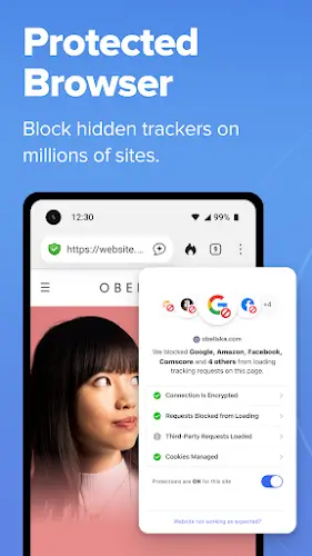 DuckDuckGo possesses a security philosophy from the very beginning with features that work tirelessly to keep you anonymous. The browser integrates a built-in Private Search engine ensuring that it does not store query history or any web browsing activity of the user. The powerful Tracker blocking system acts as a gatekeeper to thoroughly prevent third-party trackers that always seek to collect user behavior. Additionally the Forced Encryption feature automatically upgrades websites from HTTP to HTTPS protocols creating an effective anti-eavesdropping firewall especially when you are forced to use unsafe public Wi-Fi networks. In particular the App Tracking Protection feature extends the scope of protection to the entire device helping to control and block hidden tracking behaviors from other applications running on the phone.