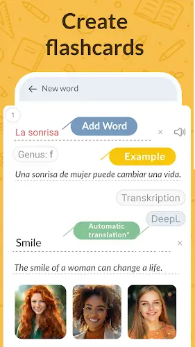 • Personalized flashcards (images, examples, transcriptions, colors)