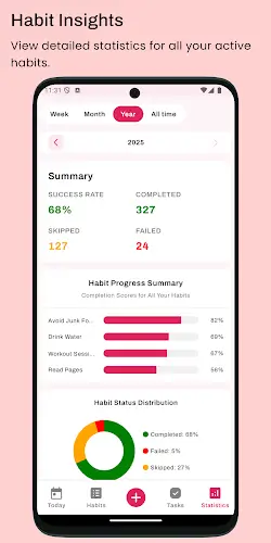 HabitGenius provides insightful reports on your progress, trends, and achievements. It offers full interface customization including Light and Dark themes and custom categories along with cloud sync, local backups, and passcode protection for secure data. Financial management becomes easier with multiple income and expense accounts, categorized transactions, analytics charts, and budgeting tools. You can monitor spending with advanced views, schedule recurring transactions, and manage pending payments effortlessly. With home screen widgets, intelligent notifications, and a complete toolkit for productivity, mental well being, and financial organization, HabitGenius empowers you to build a more structured, mindful, and motivated lifestyle every day.