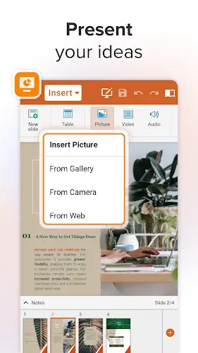 You can have peace of mind when using MobiOffice because of its incredibly wide compatibility. The app supports most popular formats today, from Microsoft Office (Word, Excel, PowerPoint), Google Docs, and Sheets to files from OpenOffice or Apple iWork. You can easily open, read, and edit Excel spreadsheets with a full system of complex formulas, or customize Word documents with advanced font formatting tools and track changes features just like on a computer. Managing multiple documents simultaneously in a single workspace helps you organize your work scientifically and productively.