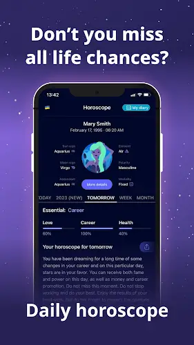 This app features a hand scanner and palm reading to reveal insights about your life, love, career, health, children, and future. Nebula offers complete information about zodiac signs, birth flowers, birthstones, ruling planets, and traits, while helping you understand astrology calendars, lucky days, and the factors that influence your destiny. You can also check horoscopes for friends and family and explore a detailed birth chart for deeper insights into yourself and your relationships. With personalized daily predictions based on your birth details, Nebula provides a clear outlook on your career, emotions, health, and the future.