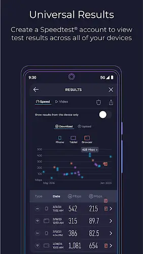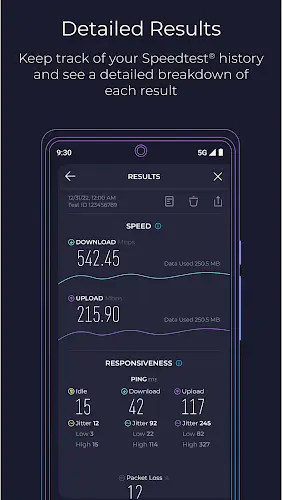 The app stores the full history of speed tests, allowing users to compare results over time. Visual charts are displayed clearly, making it easy to track changes in network quality by day, week, or month. This feature is especially helpful for evaluating long term Internet stability.