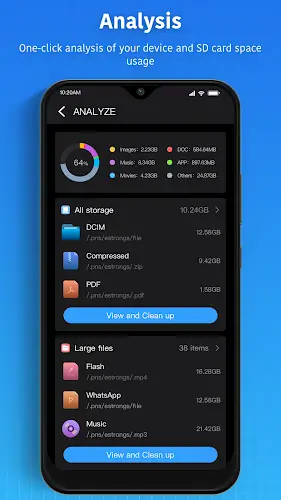 Super File Manager Explorer is an all-in-one file management app for Android that delivers a fast, smooth, and intelligent data management experience. It allows you to take full control of your files, from internal storage and local networks to cloud drives and USB devices, all through an intuitive and user-friendly interface. With its comprehensive file management system, you can copy, move, rename, compress, share, and search files in just a few taps. The Disk Analyzer feature helps you identify large files and optimize storage, while the One-Tap Cleaner automatically removes junk files to boost your device’s performance.